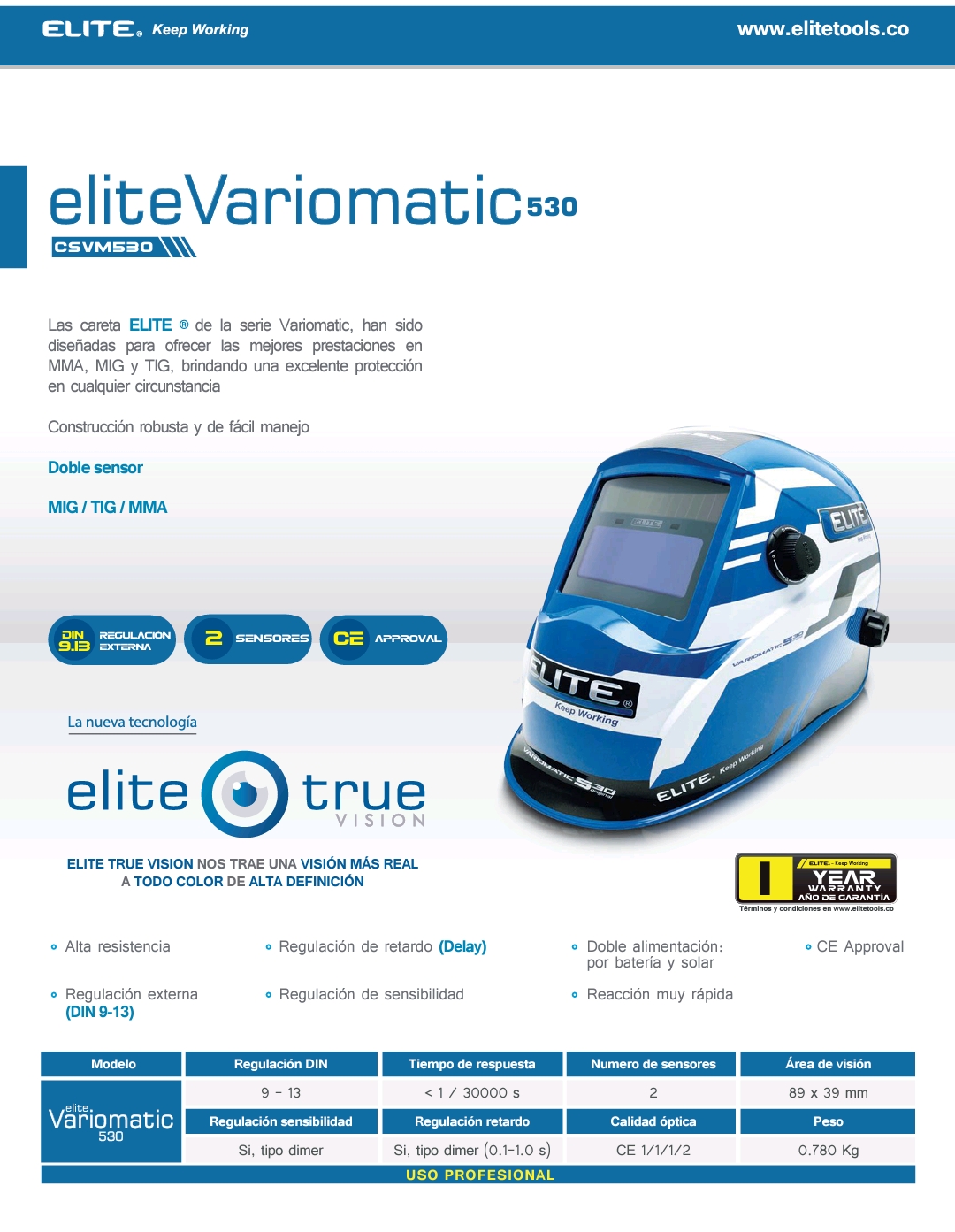 Ver Disponibilidad en tiendaCareta electrónica para soldador Variomatic 530 de sombra variable 9-13. De alta resistencia y doble sensor.