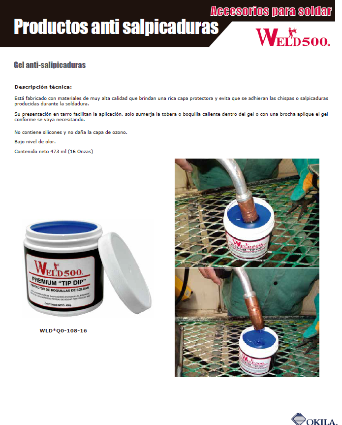 Ver Disponibilidad en tiendaGel antisalpicadura que brinda una rica capa protectora y evita que se adhieran las chispas o salpicaduras producidas durante la soldadura.