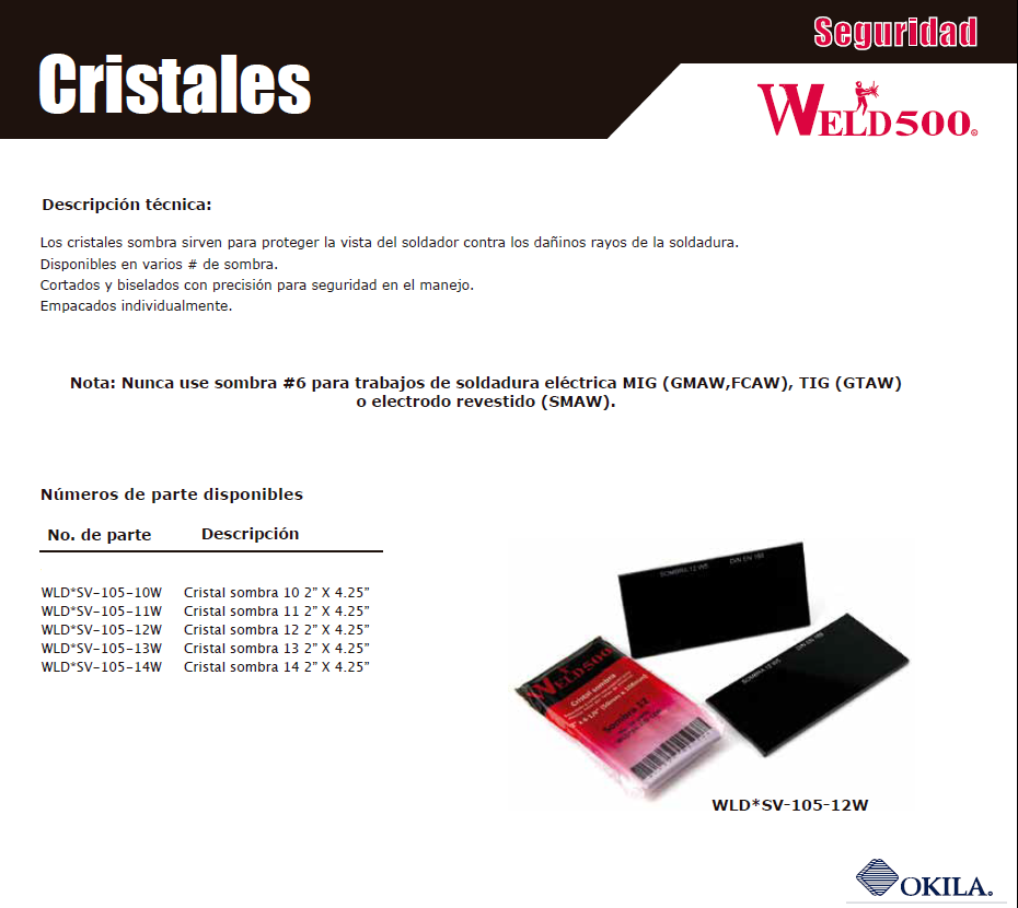 Cristales sombra (depende selección) para careta de soldar.